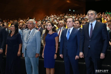 "Report" xəbər verir ki, mərasimdə Azərbaycan Respublikasının dövlət himni səsləndirilib.
