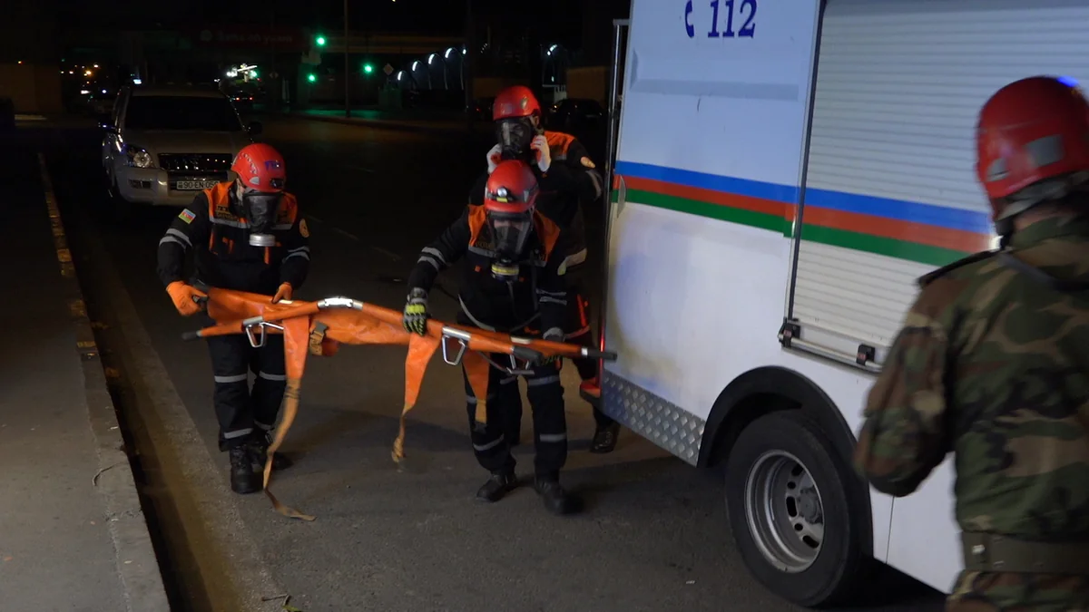 FHN-in mobil yanğın-xilasetmə qrupları tərəfindən fərdi mühafizə vasitələrindən istifadə edilməklə operativ olaraq kəşfiyyat və əməliyyat şəraitinin qiymətləndirilməsi işləri aparılıb, qısa müddətdə şərti yanğın söndürülüb, xilasetmə vasitələri tətbiq edilməklə “zərərçəkmişlər” təxliyə olunaraq onlara “ilkin yardım göstərilib”.