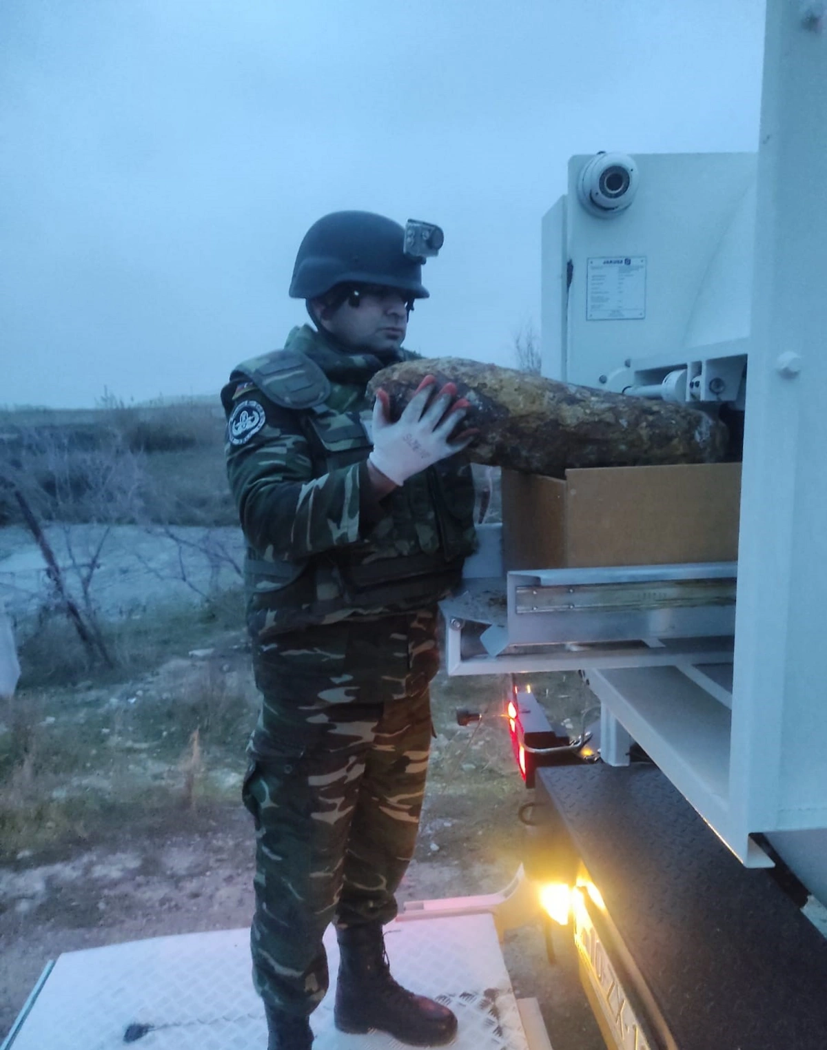 Hüquq-mühafizə orqanlarının əməkdaşları ilə birlikdə ərazidəki insanlar təhlükəsiz məsafəyə uzaqlaşdırıldıqdan və kənar şəxslərin əraziyə girişi müvəqqəti məhdudlaşdırıldıqdan sonra pirotexniklər tərəfindən hadisə yerinə baxış zamanı aşkar edilmiş sursatın döyüş tətbiqinə yararlı bir ədəd 152 mm-lik top mərmisi olduğu müəyyən edilib.