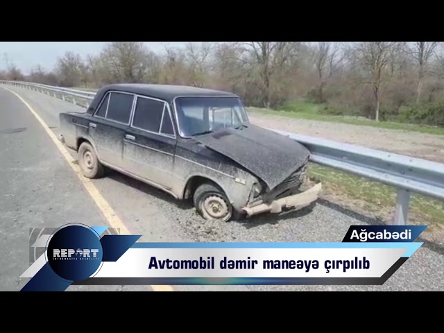 Ağcabədidə avtomobil dəmir maneəyə çırpılıb - FOTO - VİDEO