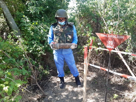 Top mərmisinin ətrafında 200 kv.m əraziyə yerüstü, 40 kv.m əraziyə isə yeraltı baxış keçirilib, əlavə təhlükəli əşya və qurğu aşkarlanmayıb.