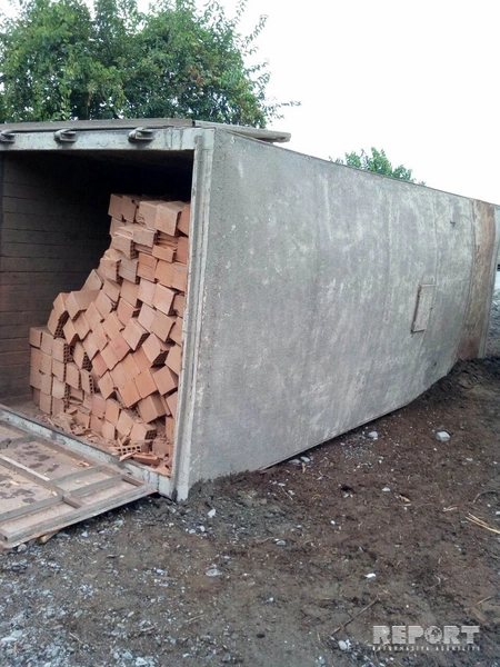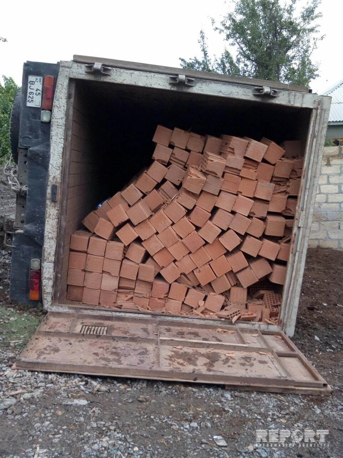 Ağdaşda kərpic daşıyan yük maşını dərəyə aşıb - FOTO