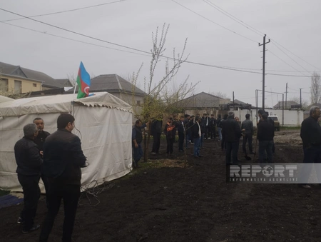 "Report"un Aran bürosunun məlumatına görə, dəfndən öncə şəhidin üçrəngli bayrağa bükülmüş tabutu doğulduğu evə gətirilib.