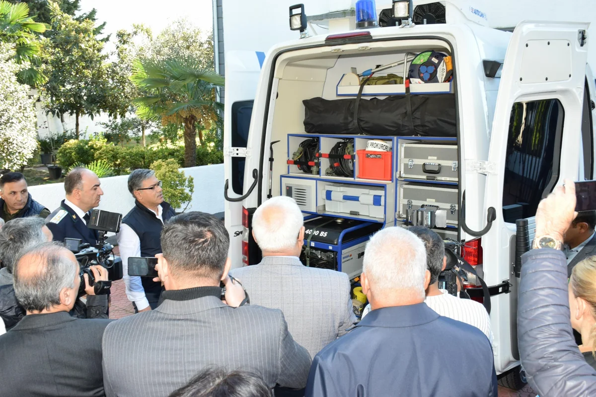 Kriminalistik avtomobil və avadanlıqlarla tanış olan qonaqlara istintaq hərəkətlərinin keçirilməsi zamanı müasir texnikadan istifadənin əhəmiyyəti izah olunub.