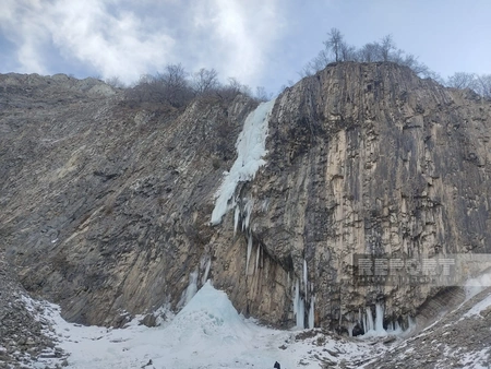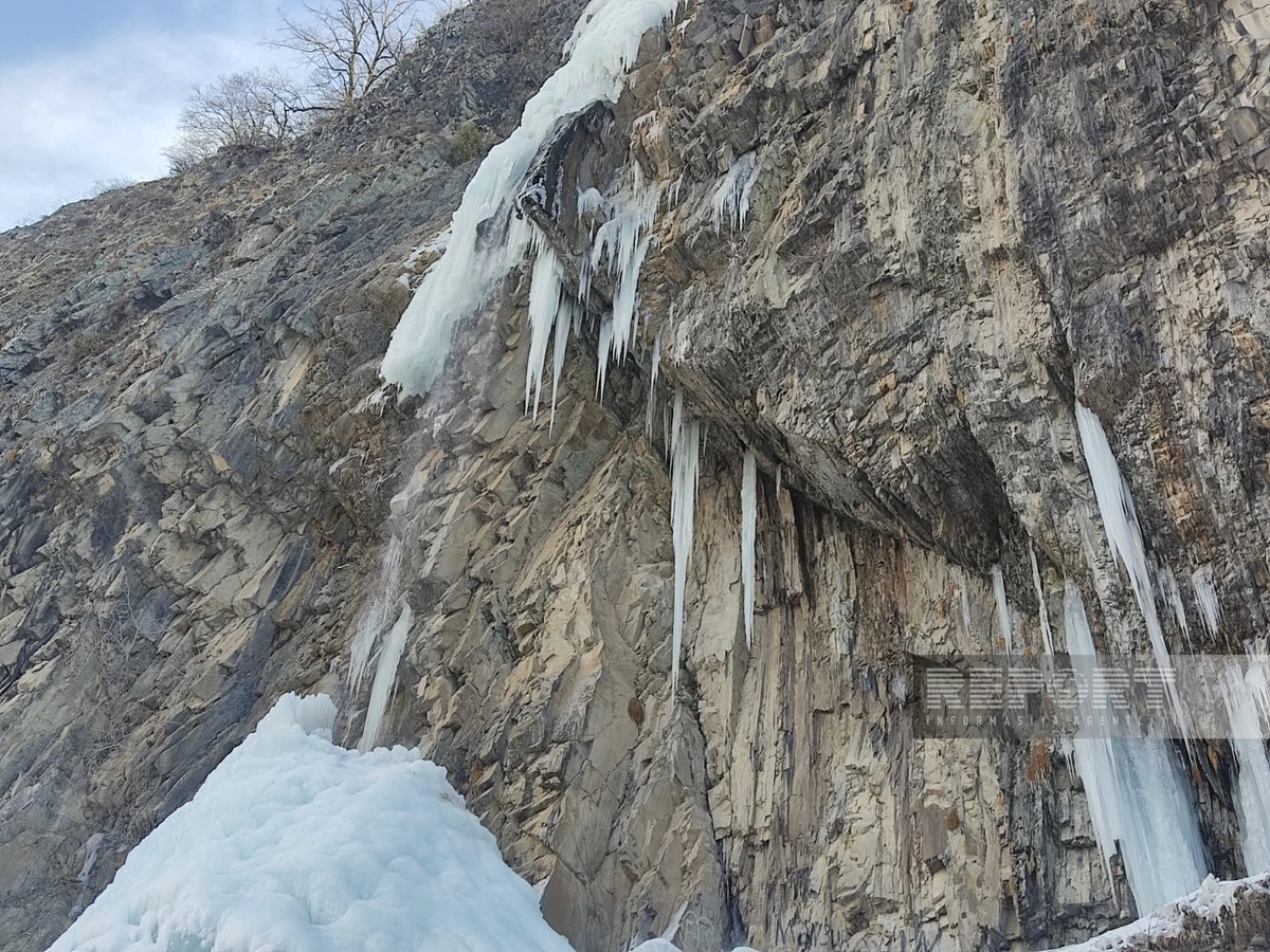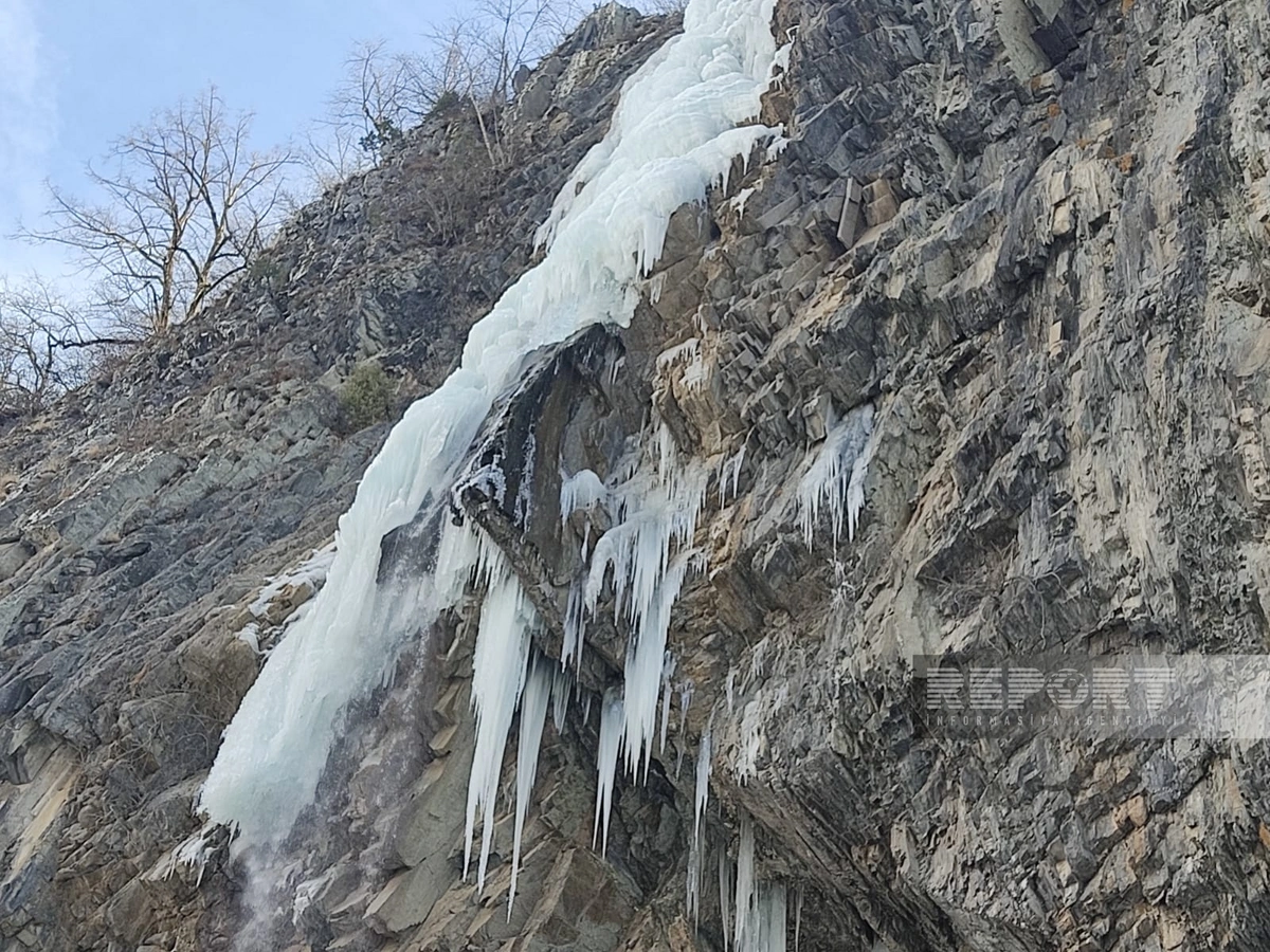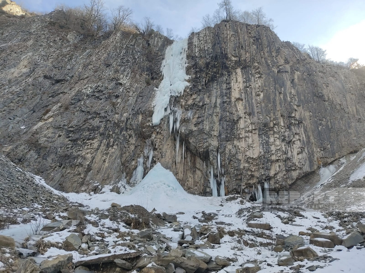 Azərbaycanda 75 metrlik şəlalə donub - VİDEO