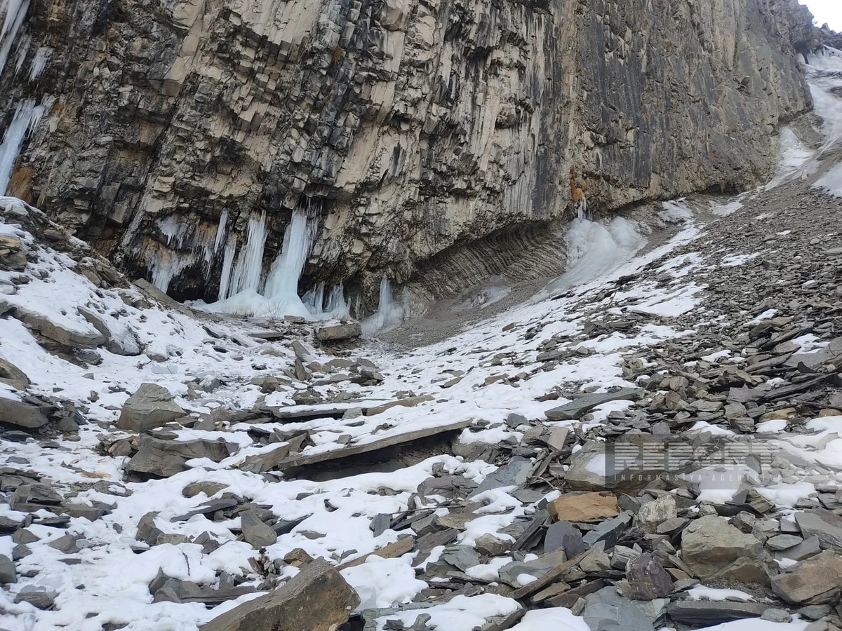 Qax rayonunun İlisu kəndində yerləşən Ramramay şəlaləsində ecazkar mənzərə yaranıb.