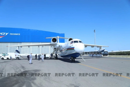 "Bu, yanğınların söndürülməsində ən effektiv təyyarədir. Təyyarə suyun üzərində durmadan 18-20 saniyəyə 12 ton su götürmə həcminə malikdir. Suyu götürərək yanğın bölgəsinə yol düşür. Təyyarə tu gündən etibarən qardaş ölkə Türkiyədə yanğınların söndürülməsində iştirak edəcək".
