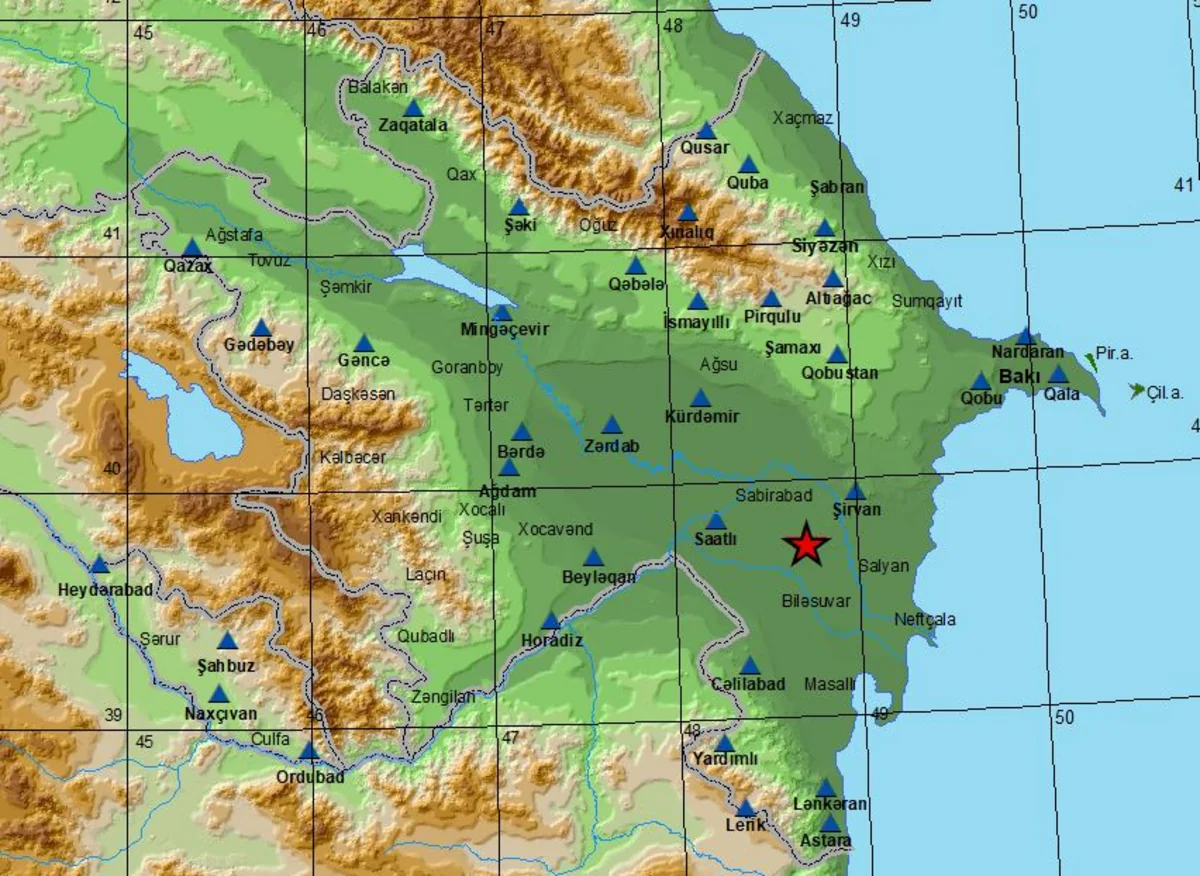 Azərbaycanın Mil-Muğan iqtisadi rayonunun ərazisində 5,1 maqnitudalı zəlzələ olub.