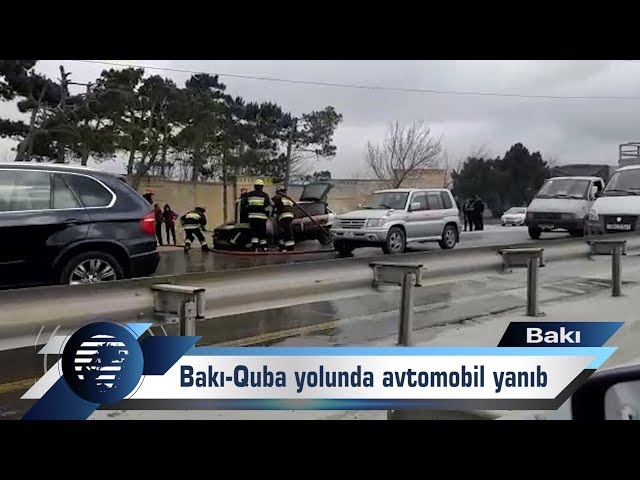 Bakı-Quba yolunda avtomobil yanıb - VİDEO