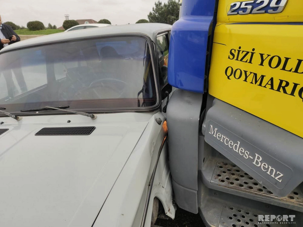 "Report"un yerli bürosu xəbər verir ki, 50-DA-813 dövlət nömrə nişanlı "VAZ 2106" avtomobil yolun ortasında idarəetməni itirib. Bu anda qarşı tərəfdən gələn 99-JP-098 dövlət nömrə nişanlı "Mercedes-Benz" markalı evakuator maşını ona dəyib.