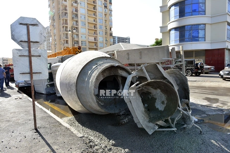 Bakıda betonqarışdıran maşın aşıb - FOTO