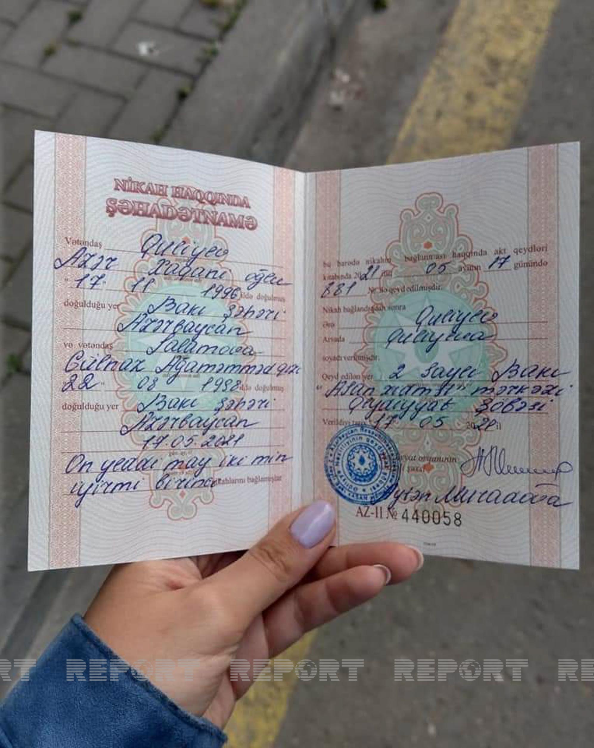 Amma mərkəzdə cütlüyə verilən nikah şəhadətnaməsi onlar evlərinə gedən zaman itib.