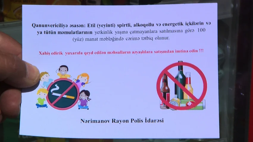 Bildirilib ki, Nərimanov Rayon Polis İdarəsinin əməkdaşlarının keçirdikləri tədbir zamanı yetkinlik yaşına çatmayanlara tütün məmulatları satan köşk və mağazalar aşkar olunub. Azyaşlılara tütün məmulatı satan satıcılarla profilaktik söhbətlər aparılıb. Həmin obyekt sahibləri barəsində İnzibati Xətalar Məcəlləsinin müvafiq maddəsi ilə protokol tərtib edilib.