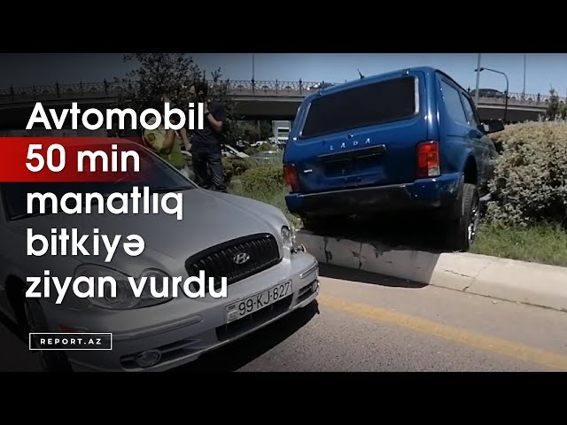 Bakıda qəza - avtomobil 50 min manatlıq bitkiyə ziyan vurdu - VİDEO