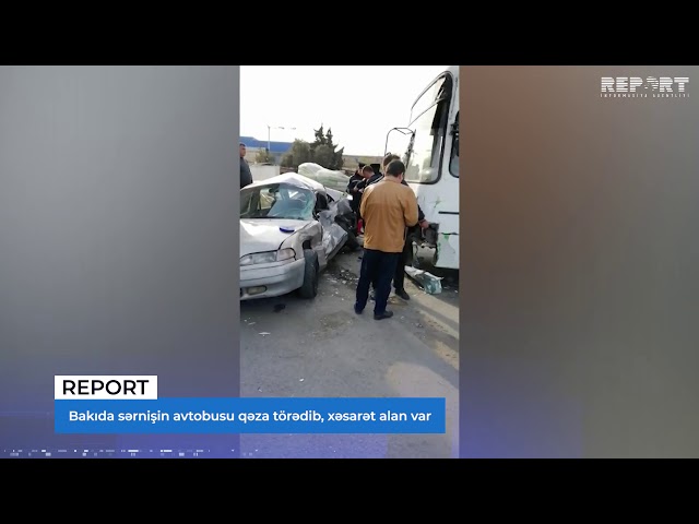 Bakıda sərnişin avtobusu qəza törədib, xəsarət alan var - VİDEO