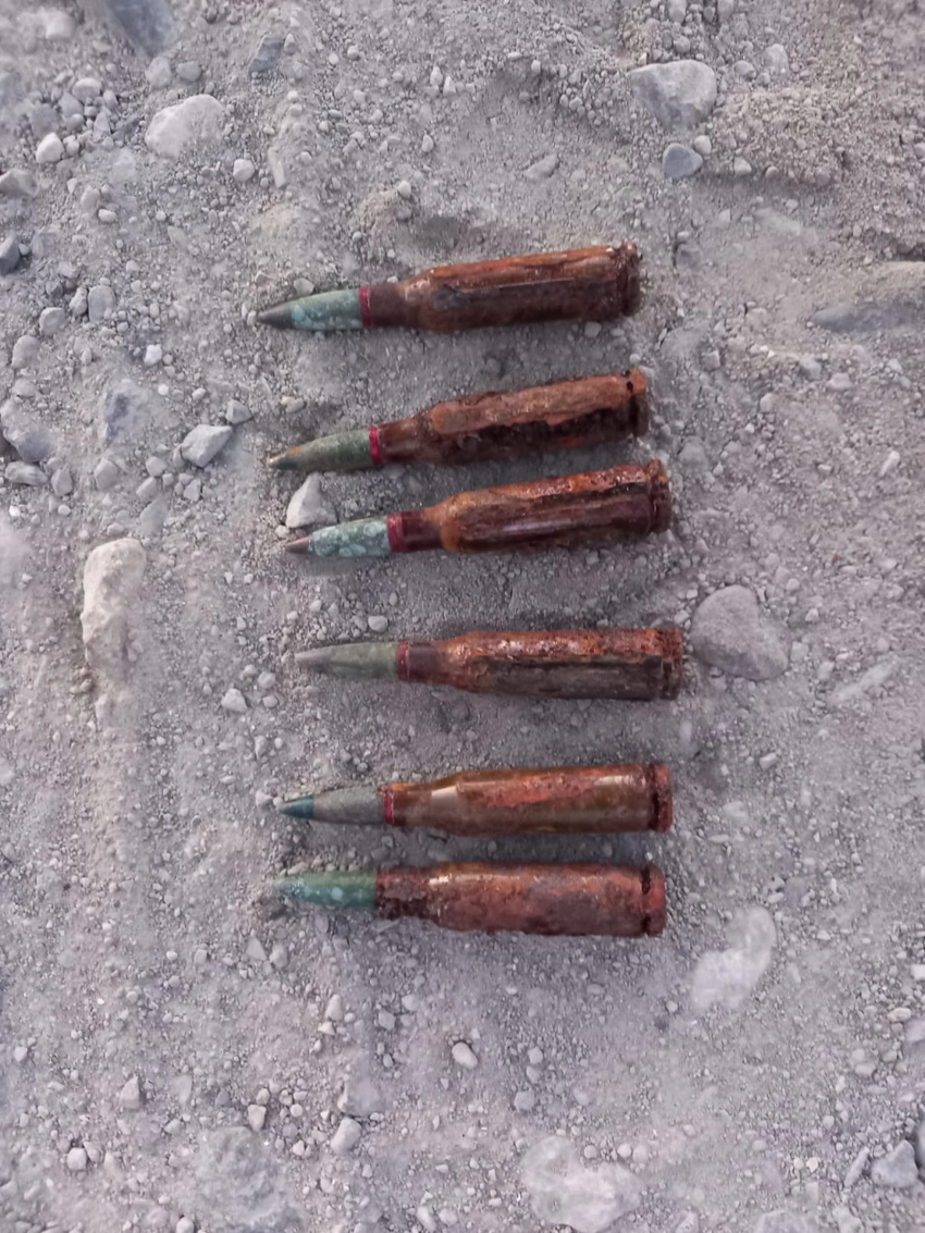 Hüquq-mühafizə orqanı əməkdaşları ilə birgə ərazidə müvafiq təhlükəsizlik tədbirləri görüldükdən sonra aşkar olunmuş sursatların 1 ədəd F-1 əl qumbarası, 1 ədəd UZRQM partladıcısı, 55 ədəd 5,45 mm-lik mərmi və 1 ədəd AK-74 avtomatının darağı olduğu müəyyən edilib.