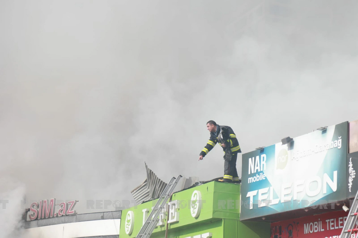“Report”un hadisə yerində olan əməkdaşı xəbər verir ki, yanğının miqyası böyüyərək digər ticarət obyektlərinə də keçib.