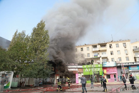 Bakının mərkəzində ticarət obyektlərində baş verən yanğın söndürülüb
