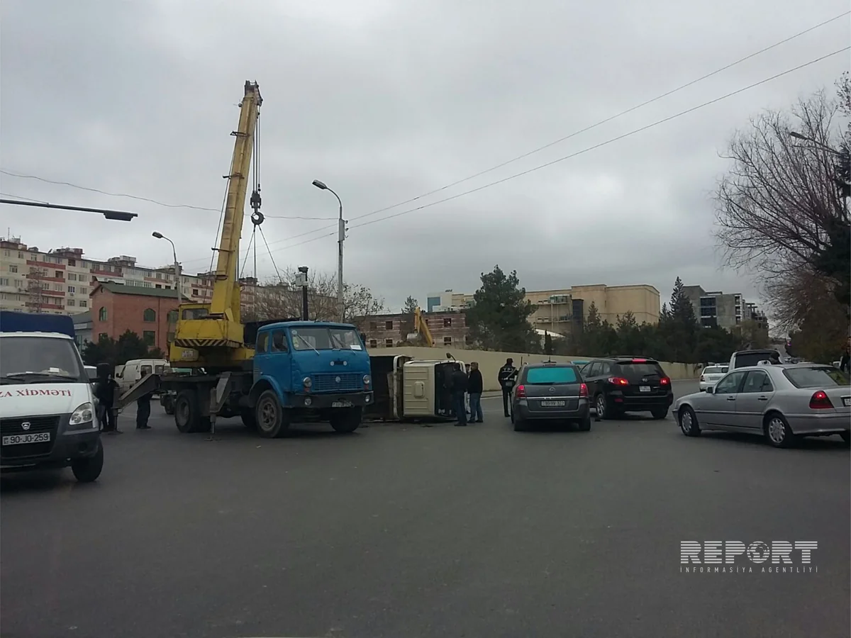 Bakıda yük maşını aşıb - FOTO