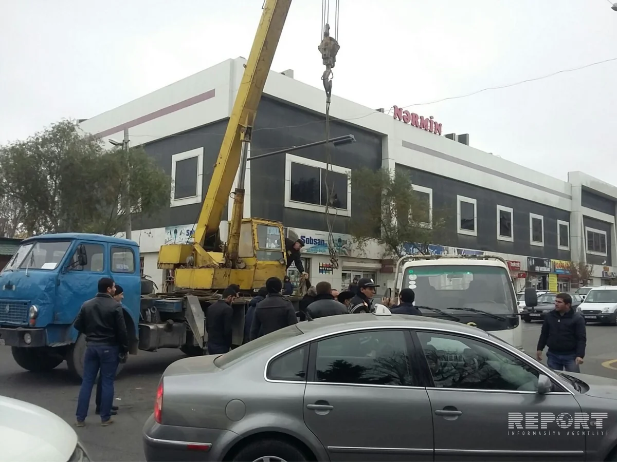 Hadisə yerinə qaldırıcı kran gətirilib.