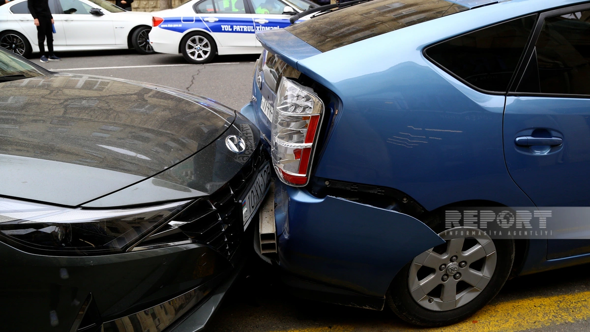 Belə ki, hərəkətdə olan "Toyota Prius" markalı avtomobil idarəetmədən çıxıb və yolun kənarında dayanmış "Hyundai Elantra" markalı maşına çırpılıb. "Hyundai Elantra" markalı avtomobil isə qarşıda dayanmış "Toyota Prius"la toqquşub. Həmin maşın isə digər "Hyundai Elantra" markalı avtomobilə çırpılıb.