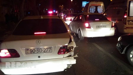 "Report" xəbər verir ki, hadisə Cəfər Cabbarlı küçəsində yüksək sürətlə hərəkət edən "Mercedes" markalı avtomobilin digər iki "Mercedes" ilə toqquşması nəticəsində qeydə alınıb.