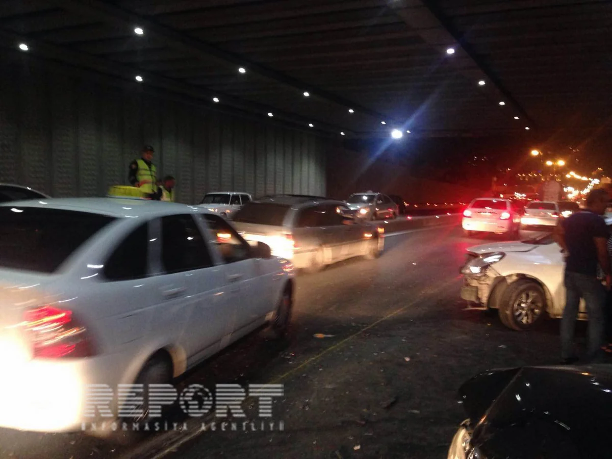 "Report" xəbər verir ki, yeraltı yol ötürücüsündə 12 avtomobil toqquşub.