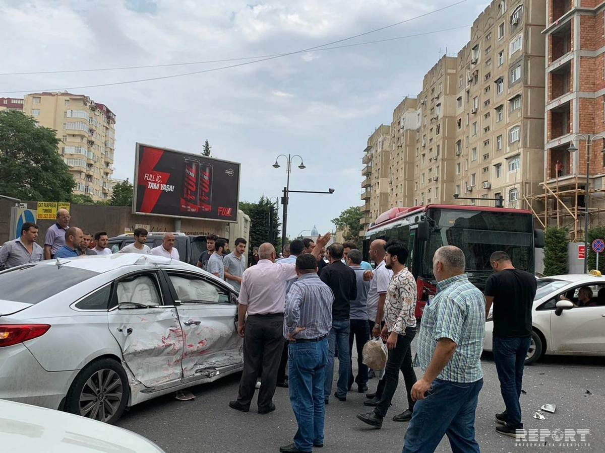 "BakuBus"un avtobusu avtomobillərlə toqquşub, xəsarət alan var - FOTO
