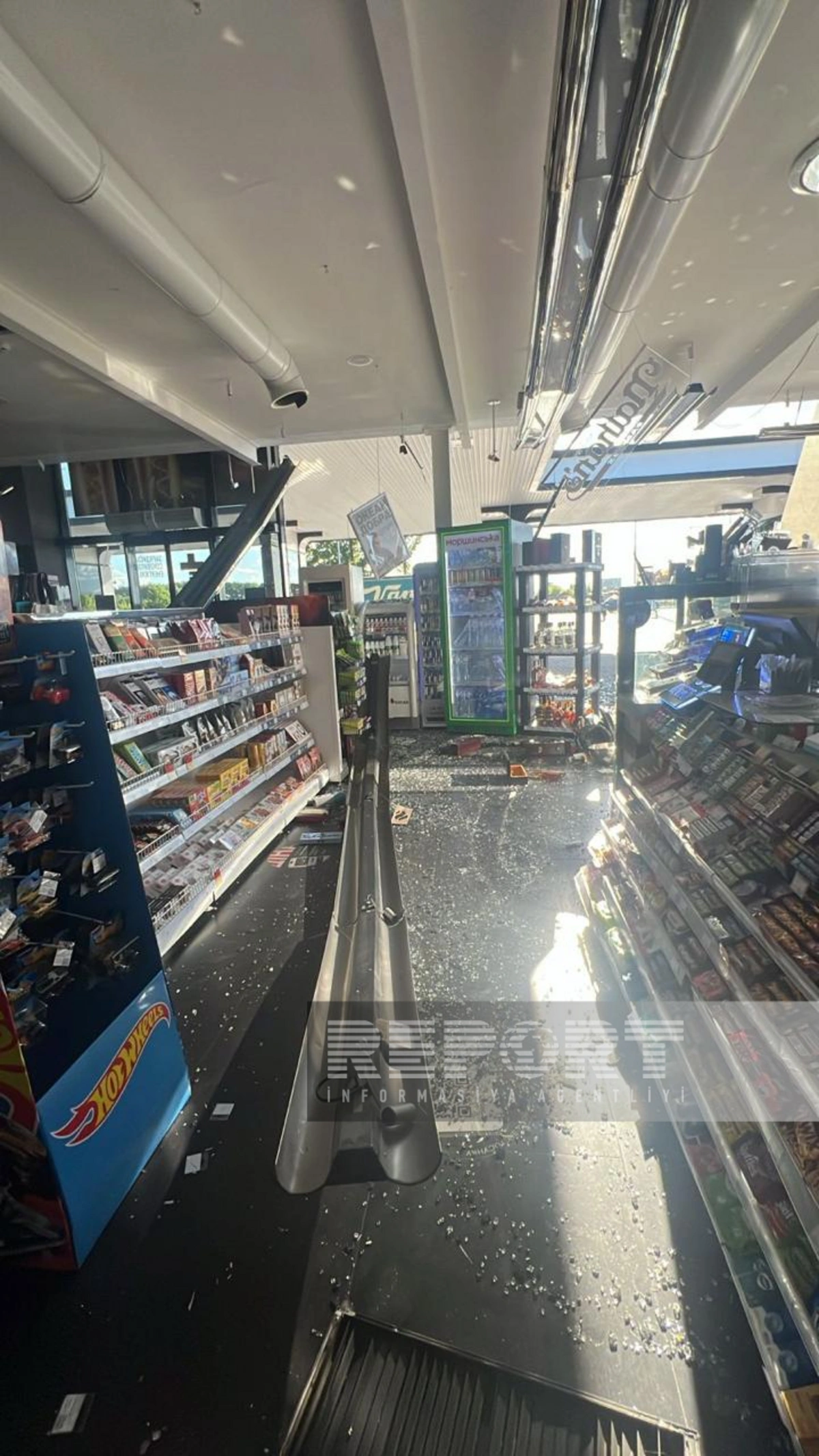 "Bu, adi iş günlərindən biri idi. Çöldə sakitlik hökm sürürdü. Sonra hamımız çox böyük partlayış səsi eşitdik. Dumandan heç nə görünmürdü. Hər şey tüstü içində idi. Daha sonra hər şeyin zədələndiyini gördük. İnsanlar çox qorxdular. Axşam saat 18 radələri idi. Ərazidə əməkdaşlar və mən vardım. YDM-in fasadı tamamilə dağıdılıb, çoxlu zədələnmiş texnikamız var, mərkəzi divarlar, kondisionerlər, mikrodalğalı sobalar əyilib, ventilyasiya sistemi sıradan çıxıb", - o, əlavə edib.