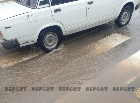 Biləsuvarda yeni istifadəyə verilmiş yol yağış suları altında qalıb.