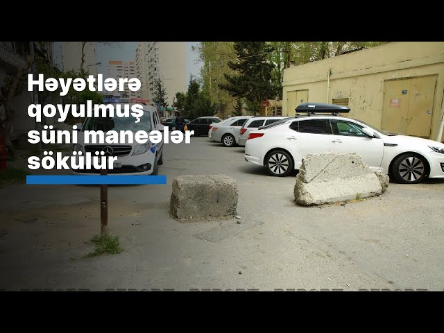 Bakıda binaların həyətlərinin giriş-çıxışlarına qoyulmuş süni maneələr sökülür