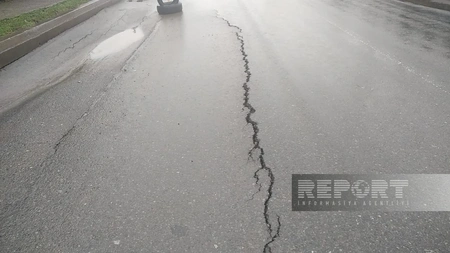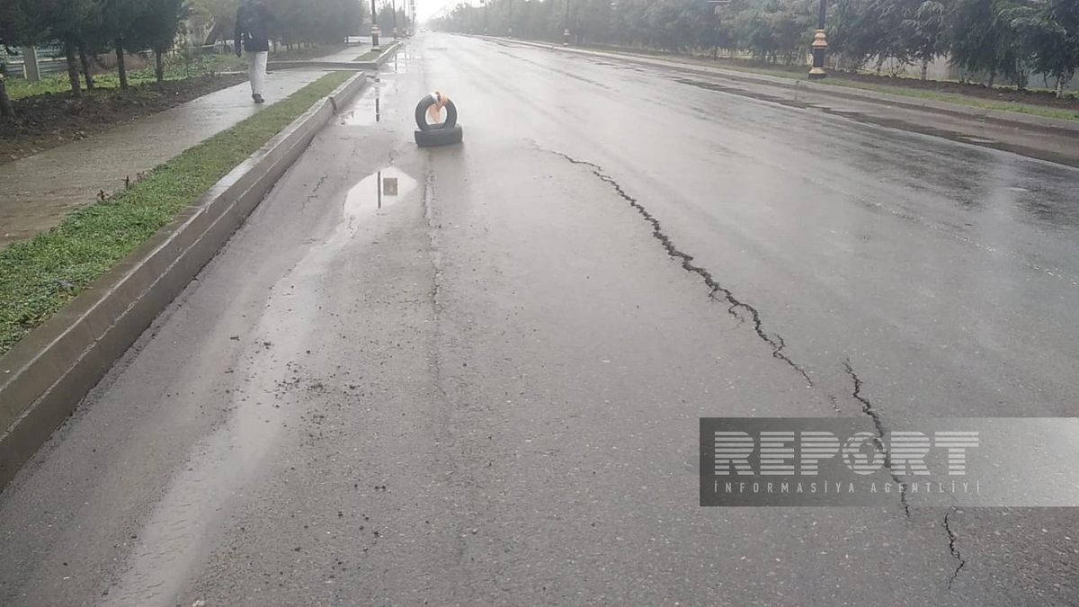 Cəlilabad rayonu Heydər Əliyev prospektinin Uzuntəpə kəndi ərazisindən keçən hissəsində yol çöküb.