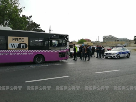 Belə ki, arxadan gələn “Ford” markalı avtomobil avtobusa çarpılıb.