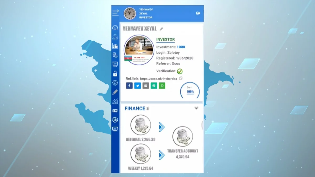 Belə ki, Baş İdarəyə bir qrup şəxsin investisiya şirkəti adı altında şəbəkə biznesi yaradaraq çoxsaylı vətəndaşları aldatmaları və pullarını ələ keçirmələri barədə əməliyyat məlumatları daxil olub. Baş İdarə əməkdaşlarının Azərbaycan Mərkəzi Bankının mütəxəssislərinin iştirakı ilə apardıqları araşdırmalar zamanı müəyyən olunub ki, Bakı şəhər sakinləri - Gülara Abdullayeva, Xəyal Yaxyayev və qeyriləri ölkə daxilində “İnsuccess” adlı fəaliyyət istiqaməti qeyri-müəyyən olan şirkət yaradıblar. Daha sonra onlar “OCOS” beynəlxalq dələduzluq piramidasını ölkəyə gətirərək yaratdıqları şirkət vasitəsi ilə sosial şəbəkələrdə piarını həyata keçirməklə geniş yayılmasını təşkil ediblər.