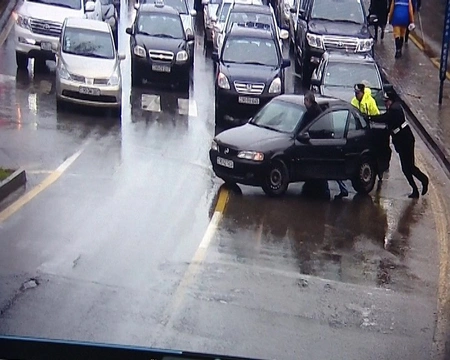 Yağışlı havada nasazlıq səbəbindən yollarda qalan avtomobillərin sürücülərinə polislər köməklik göstərərək nəqliyyat vasitələrinin yolun hərəkət hissəsindən çıxarılmasını təmin ediblər. Görülən təhlükəsizlik tədbirlərinin nəticəsidir ki, bu saata olan məlumata görə, paytaxt ərazisində ağır nəticələrə səbəb olan yol-nəqliyyat hadisəsi qeydə alınmayıb. Baş verən 9 yol qəza hadisəsi zamanı isə yalnız avtomobillərə maddi ziyan dəyib.