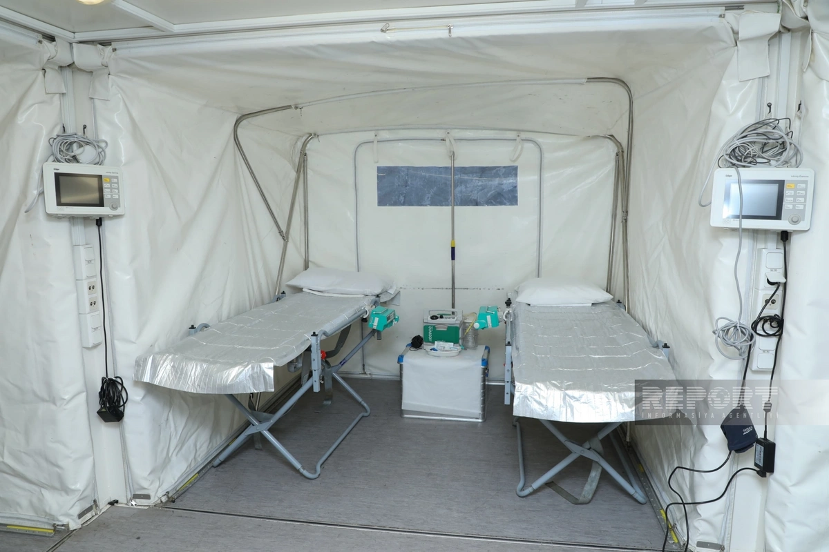 Bundan başqa, “zərərçəkənlər”ə ilkin tibbi yardımın və ixtisaslaşmış yardımın göstərilməsi məqsədilə ərazidə mobil-səhra hospitalı açılıb. Mobil-səhra hospitalı beş funksional bölmədən: qəbul-çeşidləmə, laboratoriya, reanimasiya, sarğı və iki əməliyyat blokundan ibarət olmaqla yaralı və xəstələrin müayinəsi, müxtəlif əməliyyatların icrası və müalicəsi işlərinin həyata keçirilməsi imkanlarına malik olub.