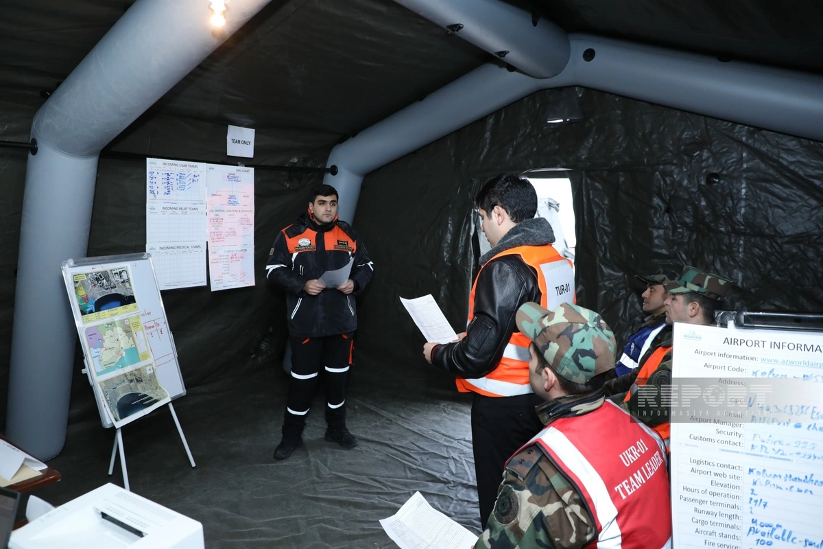 "Təlimin birinci hissəsində nazirliyin bölmələrinin aztarış-xilasetməyə cəlb olunması ilə bağlı qərar qəbul edilib. Bu məqsədlə idarəetmə və qarşılıqlı fəaliyyət təşkil edilib. Eyni zamanda ikinci hissədə dağıntılar altında axtarış-xilasetmənin həyata keçirilməsi, o cümlədən zərərçəkənin aviasiya qüvvələri tədbiq edilərək ərazidən təxliyə edilməsi tapşırıqları yerinə yetirilib".