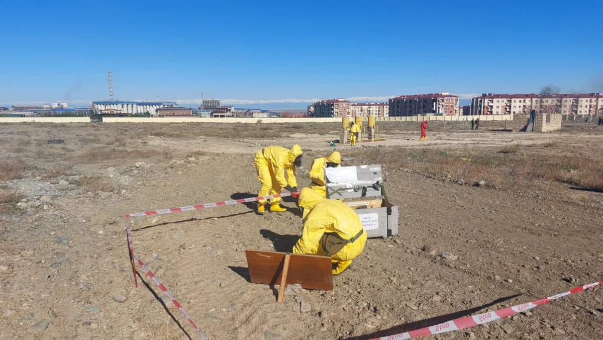 Təlim planına əsasən, şəxsi heyət və texnikanın müvafiq hazırlıq dərəcələrinə gətirilməsi, şərti fövqəladə hadisə rayonuna yürüşünün keçirilməsi, “fövqəladə hadisə rayonunda” ümumi kəşfiyyat tədbirlərinin aparılması, zərərçəkmişlərin axtarışı, dağıntılar altından və yüksəklikdən xilas edilməsi, ilk yardımın göstərilməsi və təxliyəsi, kimyəvi zəhərlənmə və radioaktiv çirklənmə ocaqlarında fəaliyyət, yanğınların söndürülməsi, sanitar təmizləmə məntəqələrinin açılması, fövqəladə hadisə rayonundan təxliyə olunmuş əhalinin ilkin həyat fəaliyyətinin təminatı üzrə praktiki tapşırıqlar yerinə yetirilib.