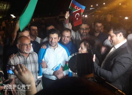 "Hər kəsə təşəkkür edirəm. Mən bura bu qədər insanın gəlməsini istəmirdim. Ona görə də heç kimə heç bir xəbər verilməmişdi. Özüm üçün də gözlənilməz oldu çıxmağım (deportasiya olunması – red.). Tam 40 gün boyunca qapalı məkanda qalmışam. Ona görə də bir az dincəlmək istəyirəm. Dünən axşam dindirilmişdim və bu gün səhər gözlənilmədən xəbər çıxdı ki, artıq Rusiyanı tərk edirəm. Yəni, bir az özümə gəldikdən sonra, ayrıca bir mətbuat konfransı keçirib, bütün suallarınıza cavab verəcəyəm".