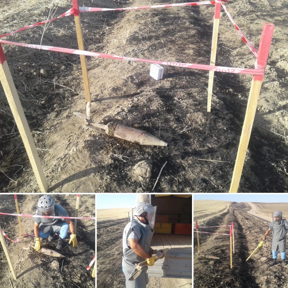Agentliyin mütəxəssisləri və Füzuli rayon Polis şöbəsinin əməkdaşları tərəfindən birlikdə yuxarıda adı qeyd olunmuş ərazidə əkin sahəsinə baxış keçirilib. Təhlükəsizliyi təmin etmək məqsədilə ərazi polis tərəfindən mühasirəyə alınıb. Agentliyin mütəxəssisləri tərəfindən aparılan təcili təxirəsalınmaz əməliyyat-axtarış tədbirləri nəticəsində 1 ədəd 100 mm-lik top mərmisi (3BK-5M) aşkar olunub, zərərsizləşdirilməsi üçün götürülərək Agentliyin mərkəzi məhvetmə ərazisinə daşınıb.