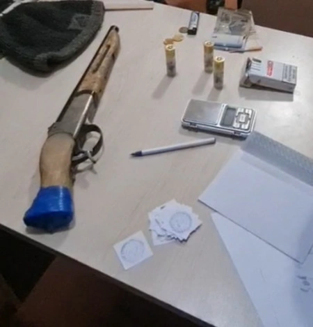 Onun üzərində şəxsi axtarış keçirilən zaman 1 ədəd, müvafiq sənədi olmayan, qundağı və lüləyi kəsilmiş, atəşə yararlı tüfəng, həmin tüfəngə məxsus 3 ədəd patron və 1 ədəd kağız bükümdə ümumi çəkisi 1.64 qram narkotik vasitə olan qurudulmuş marixuana aşkar edilərək götürülüb.