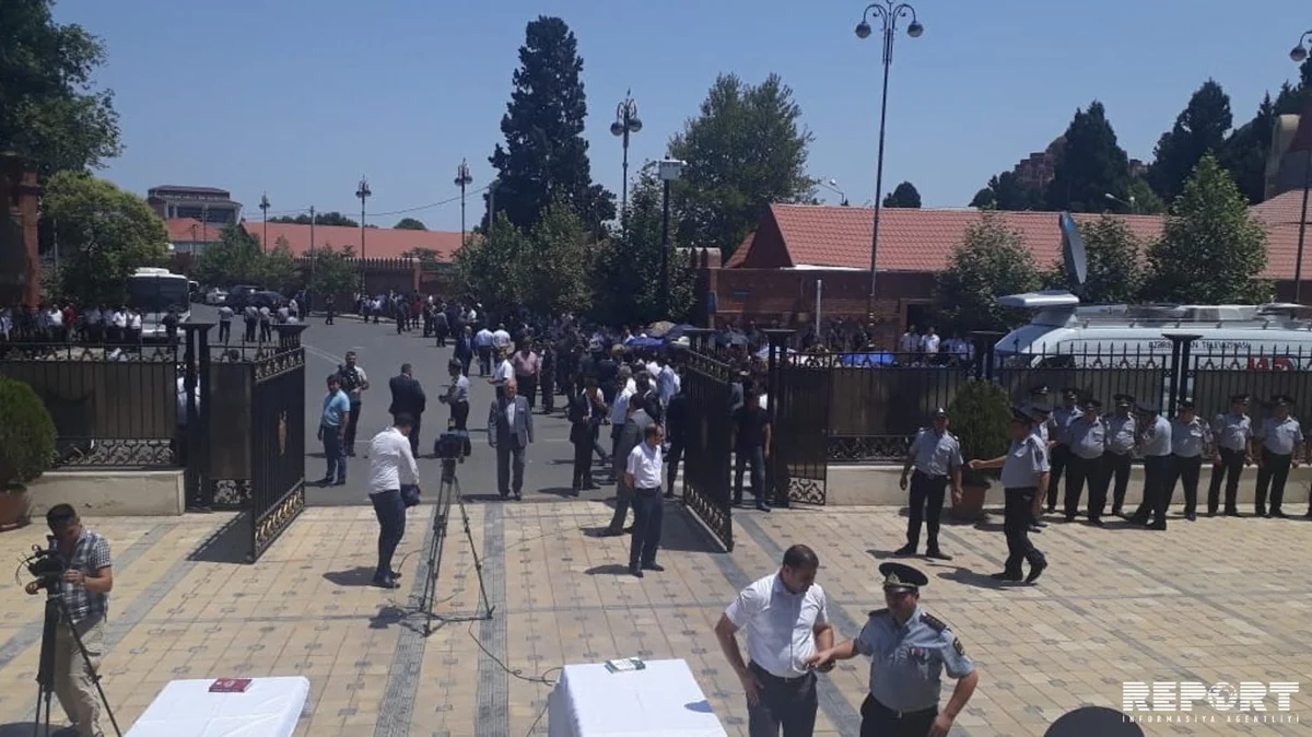 Gəncə. 11 iyul. REPORT.AZ/ Gəncə Şəhər Baş Polis İdarəsinin binasının qarşısında şəhid polislərlə vida mərasimi keçirilir.