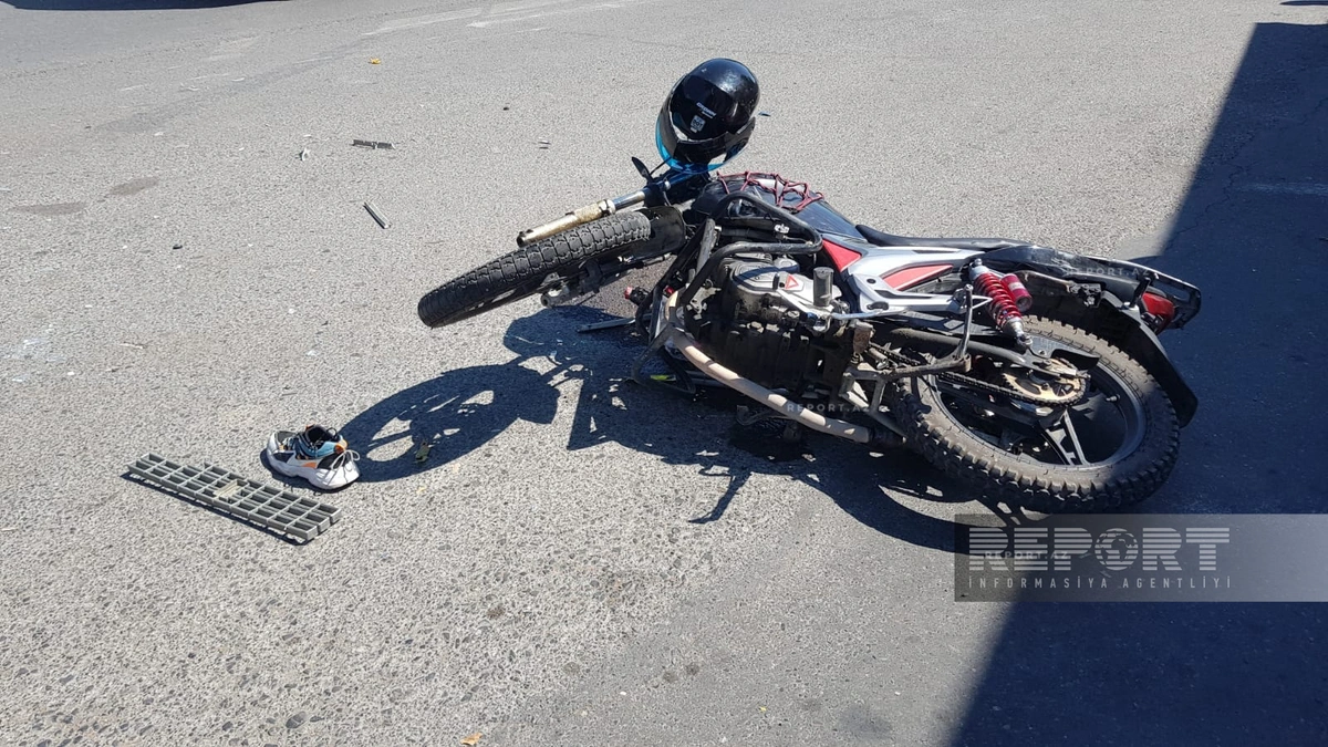 "VAZ 2107" markalı avtomobillə motosikletin toqquşması nəticəsində motosikletin sürücüsü Kamil Abdullayev ağır bədən xəsarəti alıb.