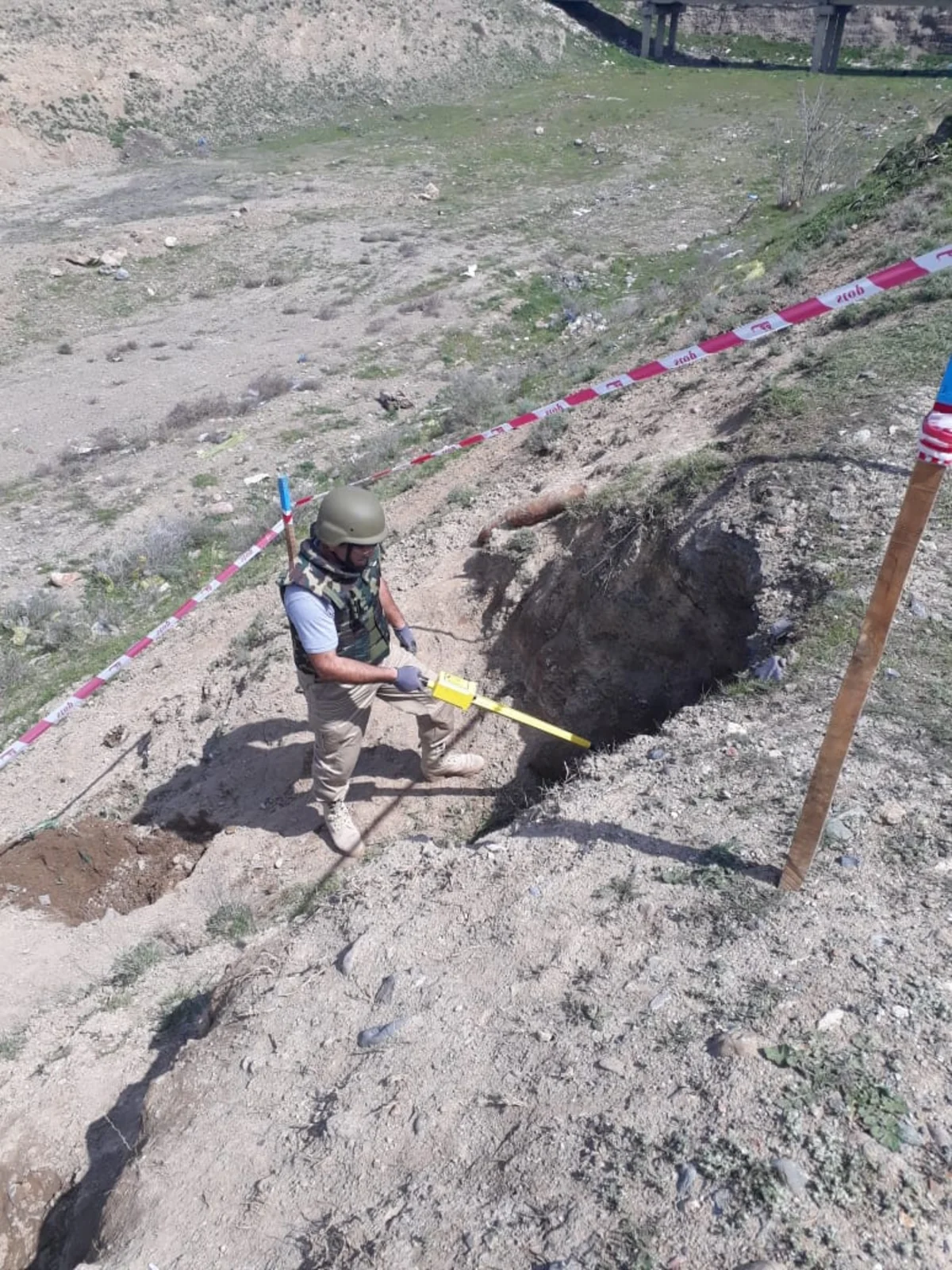 Aşkar olunmuş mərmilərin ətrafında 5 000 kv.m əraziyə yerüstü və 100 kv.m əraziyə yeraltı baxış keçirilib, bundan əlavə təhlükəli əşya və qurğu aşkar edilməyib.
