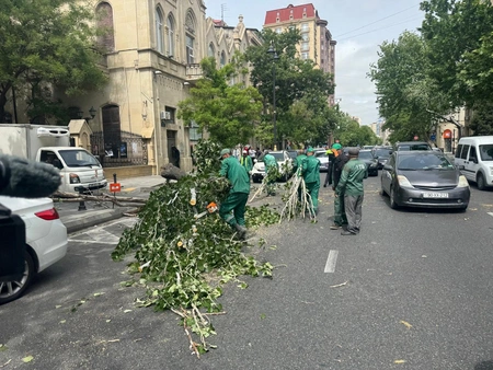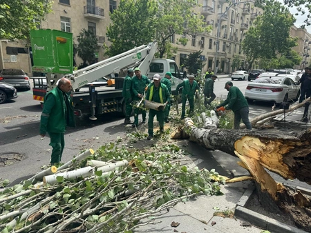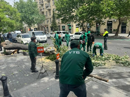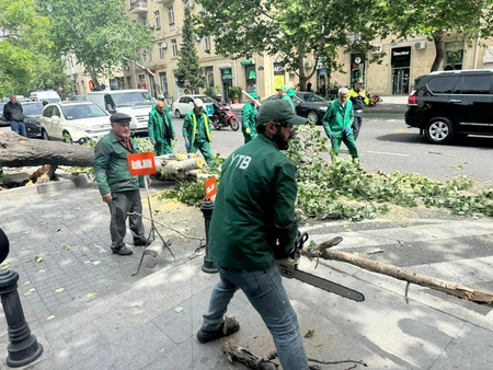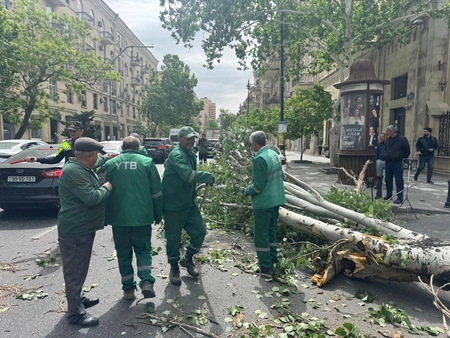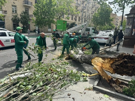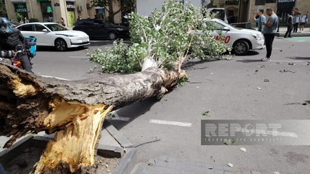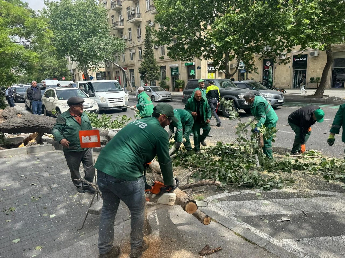 Bakının Nəsimi rayonunun 28 may küçəsində güclü külək nəticəsində aşan ağac ərazidən götürülüb.