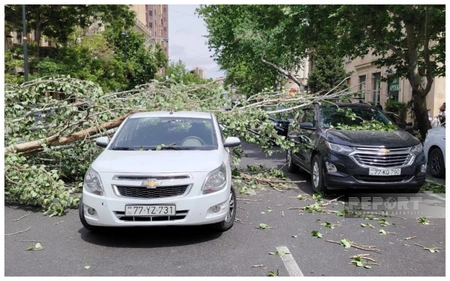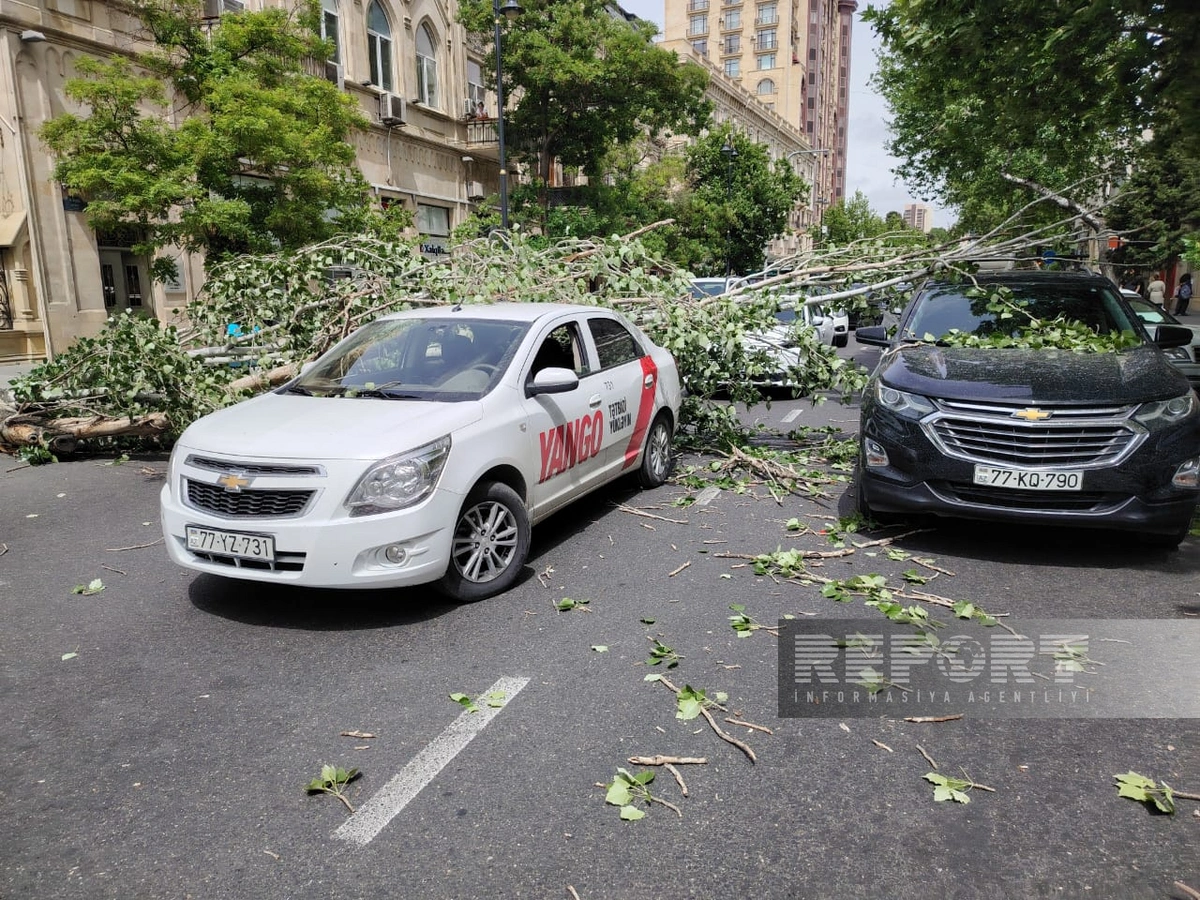 Bakının Nəsimi rayonunun 28 may küçəsində güclü külək ağacı avtomobillərin üzərinə aşırıb.