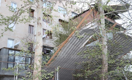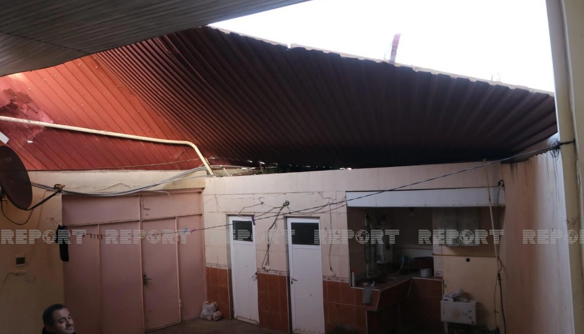 Gülüstan qəsəbəsində yerləşən 33 saylı yaşayış binasının dam örtüyünün bir hissəsi aşıb, Şahsevərlər küçəsində ki, fərdi evin dam örtüyü yararsız hala düşüb.
