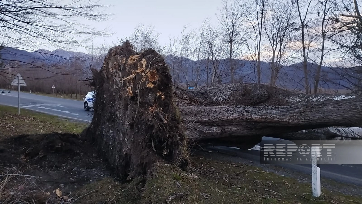 Belə ki, güclü külək nəticəsində iri gövdəli ağaclar Oğuz-Bayan avtomobil yoluna aşıb. Nəticədə nəqliyyat vasitələrinin hərəkətində məhdudiyyətlər yaranıb.