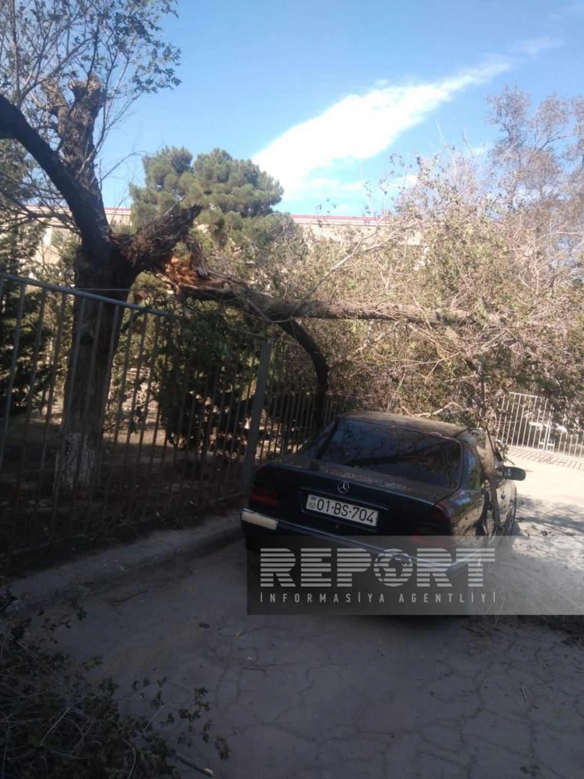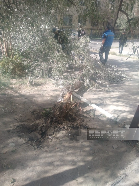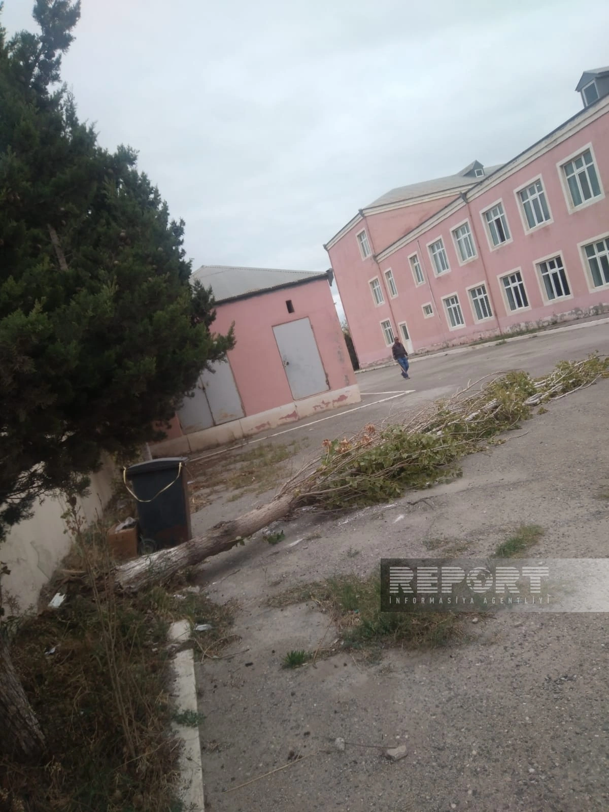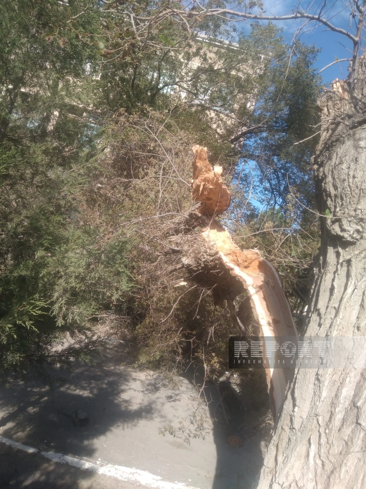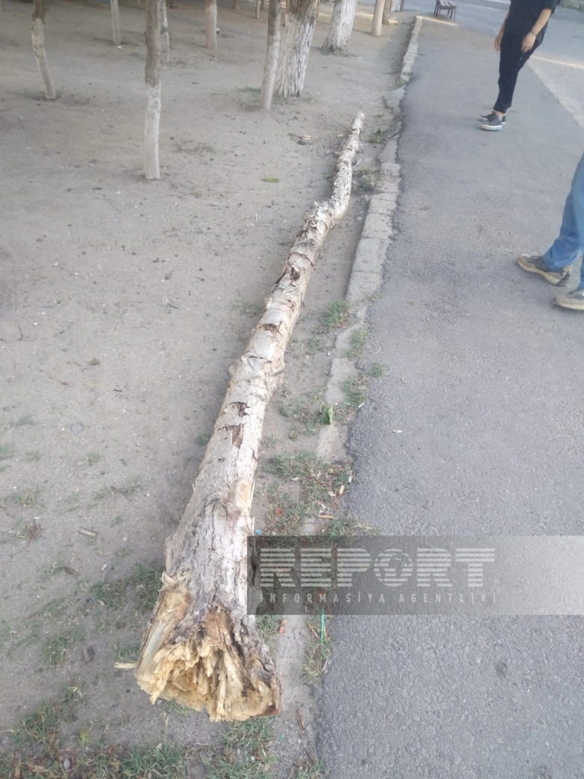 Güclü külək Sumqayıtda bir sıra fəsadlar törədib, iri gövdəli ağacları aşırıb.