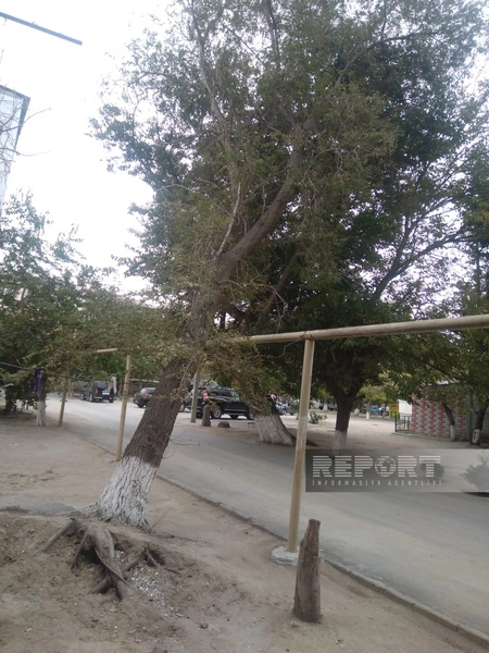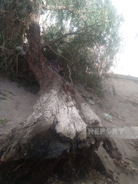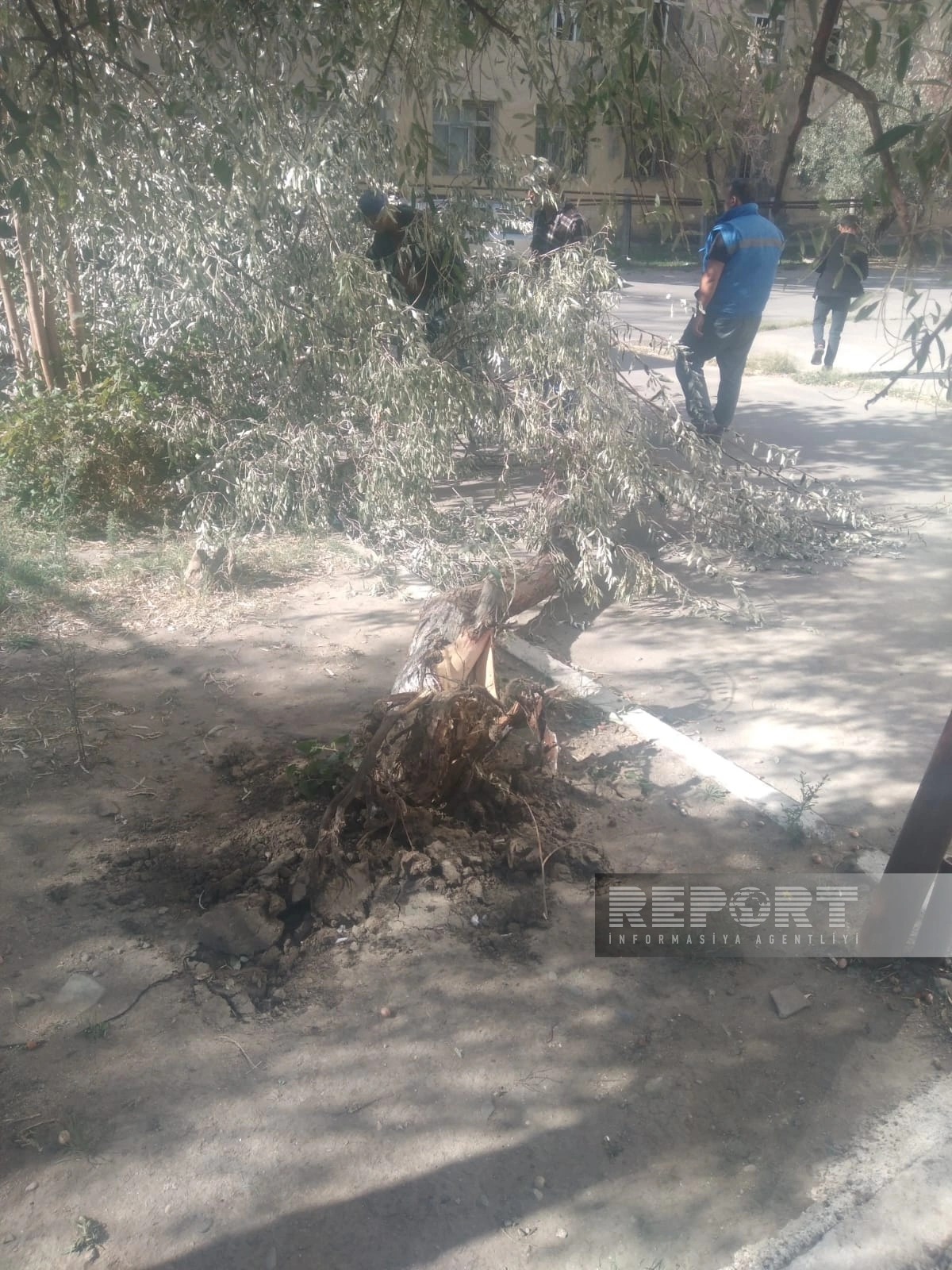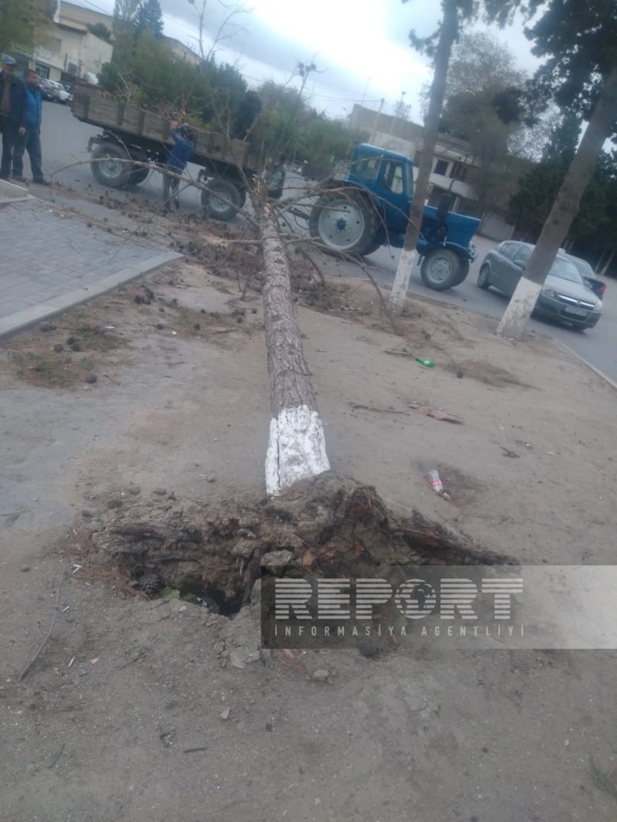 Güclü külək Sumqayıtda irigövdəli ağacları aşırıb